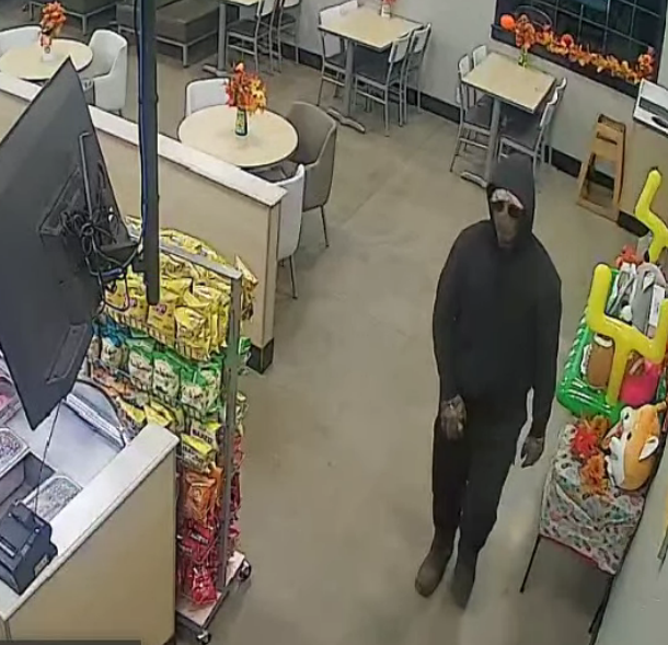 On Sunday 11/09/2025 around 7:00 PM an unknown male entered the subway restaurant in the 212000 block of State Highway 97 in the Village of Stratford. The male went into the bathroom then approached the counter where he lifted his sweatshirt to reveal what appeared to be a black handle of a handgun. The male then pointed to the register. The suspect left the store with just over $100.00 in cash.